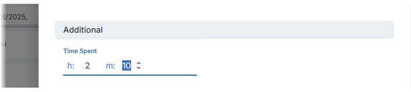 Fixed inconsistent keyboard navigation in Time Spent and other time duration fields. Previously, tabbing into the Minutes field placed the cursor at the end instead of selecting the entire value, causing new digits to append to the existing ones (for example, changing 00 to 59 instead of 09). The Minutes (m) field now highlights its entire value, matching the behavior of the Hours (h) field.