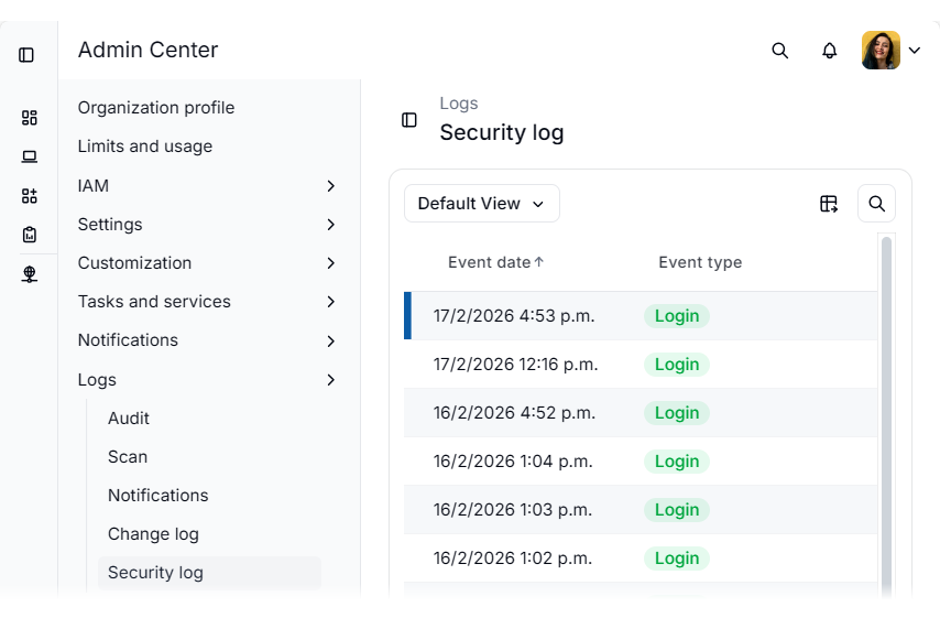 A new log is now available in the Admin Center, under Logs | Security log. It captures user and API logins, session timing, and IP information in a structured view, helping administrators easily review and investigate security activity.
